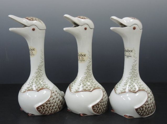 この変わった形のボトルはグースと呼ばれており、色は今回お買取りしたホワイトグースの他にゴールドやブルーのグースもあります。このボトルはアルマニャックの熟成庫を護ると言われている伝説のガチョウをかたどったそうです。
