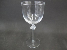 ラリック ロクサーヌワイングラスです。 ストレートのステムの最上部につや消しで天使が二人います。 ラリックでも大変珍しいワイングラスです。 ロクサーヌのように立体的な彫刻はあまり類を見ません。